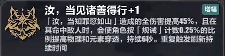 戒律二:普攻、必杀、回能/降计数易伤,解锁核心即可,最好拿到增幅刻印的50%穿透。