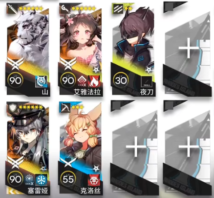 如图所示顺序部署山(技能好了就开)→克洛丝→ 夜刀 →艾雅法拉(向右)。