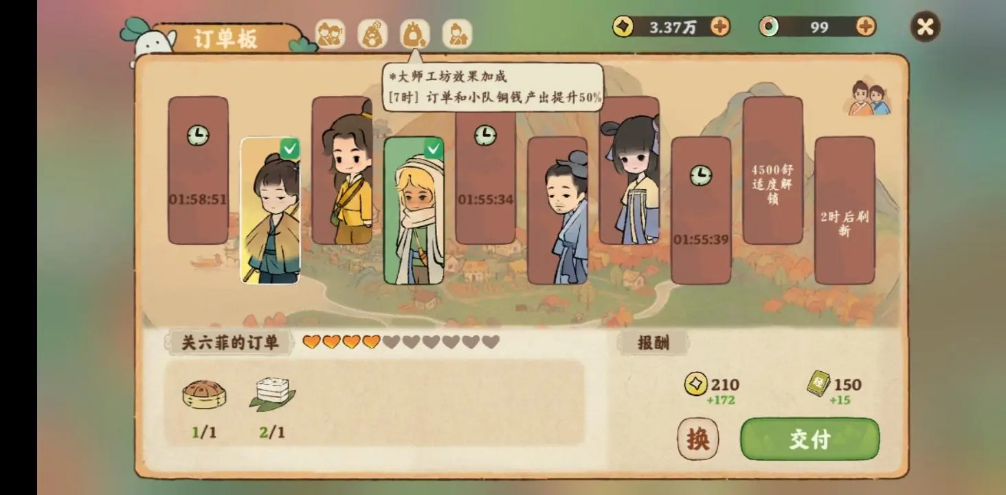 2、第二天选择金币多多+50%铜钱配合上其他加成可大幅提升赚钱效率,消耗第一天囤积的货物,快速赚钱。