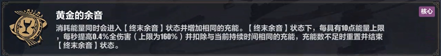 【千念】的高额耗能可以快速把黄金二核心计数叠到300以上,可谓是乐土目前叠黄金二最快的角色了。