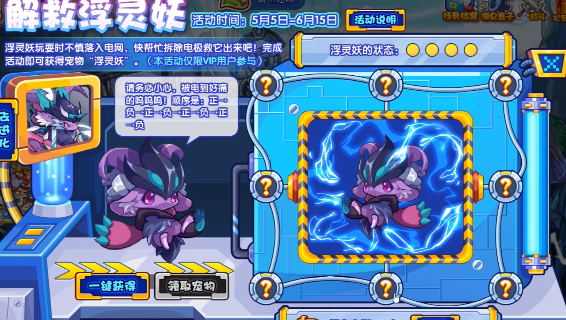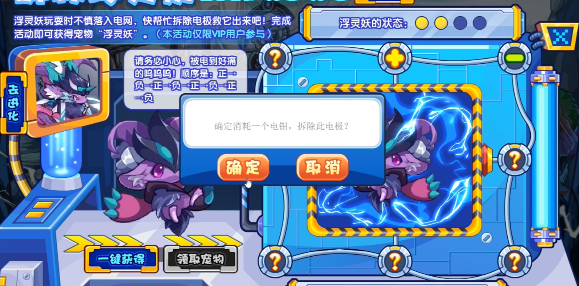 5、当按照正确顺序拆解完8个电极且浮灵妖的状态不为0时即可完成活动领取宠物,完成活动可领取1只宠物,一键完成不限量。
