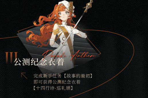 只需要玩家完成开头的新手任务【故事的最初】,该任务完成后即可领取公测纪念衣服【十四行诗-巡礼颂】。