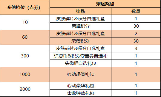 皮肤碎片&积分自选礼盒:打开礼包可任意选择以下奖励之一:荣耀积分*10或皮肤碎片*1