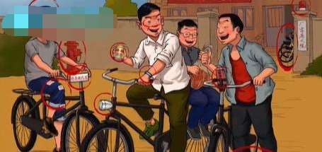 1、比较好找的就是左边车子上的牌子写着两条腿代价,还有就是他身上穿的破洞裤,还有就是白色衣服的男子手里拿着的是红牛,而且他的手上还戴着运动手环。