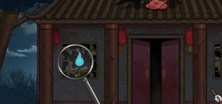 1、这一关一共有两个场景,首先就是破庙的外面,我们使用放大镜并查看收集就能够发现楼顶上的乌鸦正在食肉、还有就是庙内有一团绿色的鬼火、接着就是右边的纸人正在扫地。