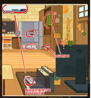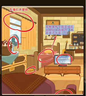 冰箱里的食物,其他事件完成之后,出现门就连续点击床三次。