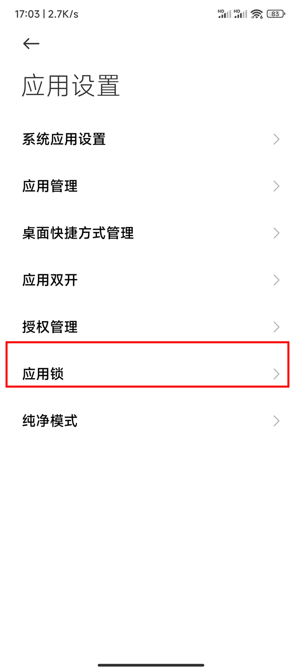 2、进入应用设置页面后,点击【应用锁】选项。