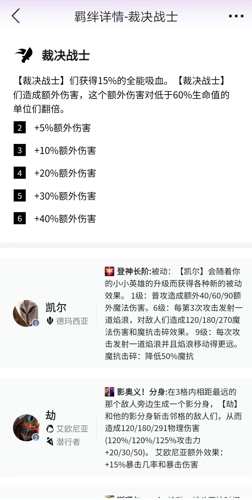 阵容羁绊构成:5裁决战士+3约德尔人+3德玛西亚+2主宰