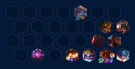 中期有抽到2星加里奥可带肉装+德玛西亚羁绊偷的光明装备,很肉,过渡不会掉太多血,拿经济海克斯,确保4-2之前抽到3星波比3星小炮+三星岩雀或三星提莫。有3个三星弈子就可使3星波比变成4星,有4星波比可以锁血。