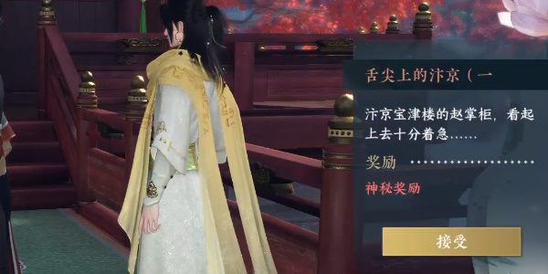 3、我们和宋夫人完成对话之后我们就需要返回宝津楼和赵宝津进行对话,对话后我们得知我们需要去皇城送蜜饯果盒;