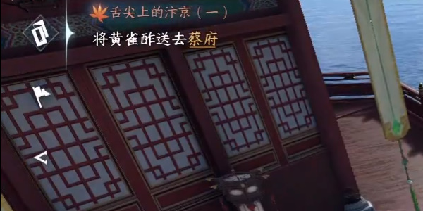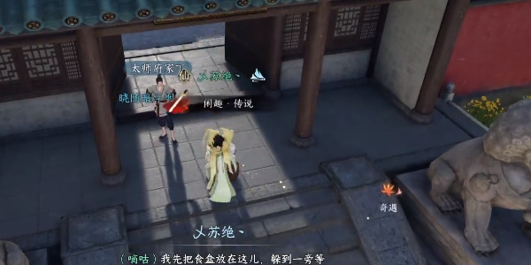 6、我们把黄雀酢放到蔡府门口我们跑到石狮子旁边,蔡府的小厮就会出来,出阿里之后我们到门口和他进行对话,对话结束之后我们返回和赵宝津进行交差,对话结束之后我们的奇遇任务也就完成了;