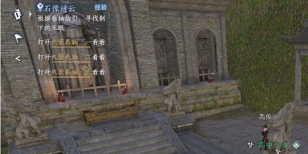 1、首先我们需要先祭拜雕像,然后触发线索我们拿到线索之后把石头放到石狮子身上狮子就会吐出来一个密卷,我们查看密卷即可;