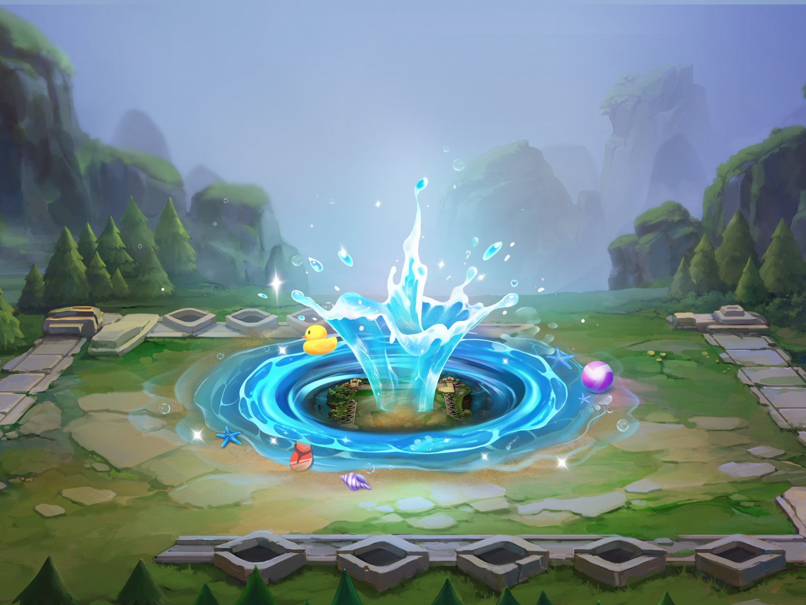 同时拥有【泳池派对-小小菲奥娜-TheShy纪念限定】和【魄罗水上乐园】,可激活泳池派对羁绊,奖励浪花之门传送门特效。