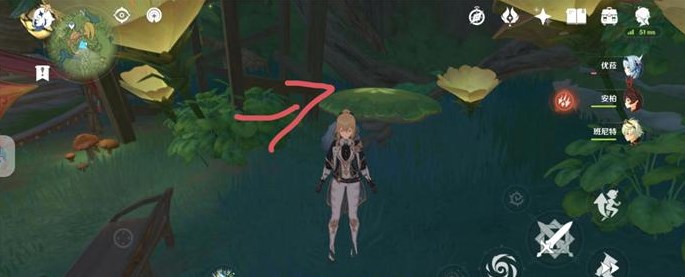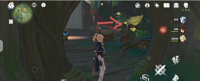 6、被识破的幻水精灵会变成弹力蘑菇,上去跳一下,飞到制高点面向架子平台,就可以看到这个宝箱了。