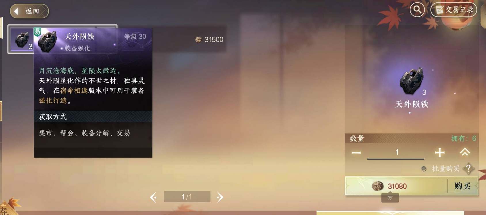 5、寄售购买:奇珍阁交易系统中,使用纹玉购买其他玩家寄售的铜钱。