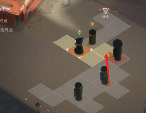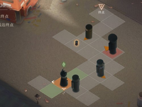 ②第二步我们可以一直畅通无阻的走到交叉警察旁边的交叉路口,这个时候我们往上走先把道具捡到手,把道具仍在警察的前面挡住警察前进的道路。