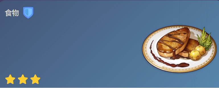 枫丹的传统菜肴。柔软细腻的肥肝,宛若一条丝滑的缎带,在舌尖的轻轻触碰之下,滑入喉头。如此丰润至极的美味,恐怕是一吃误终身,不吃终身误。