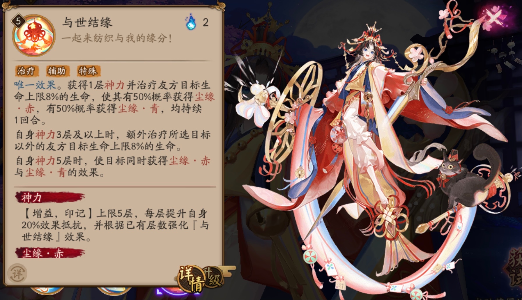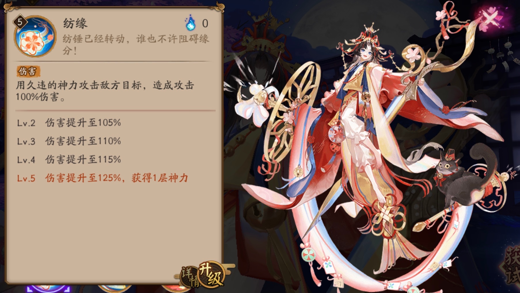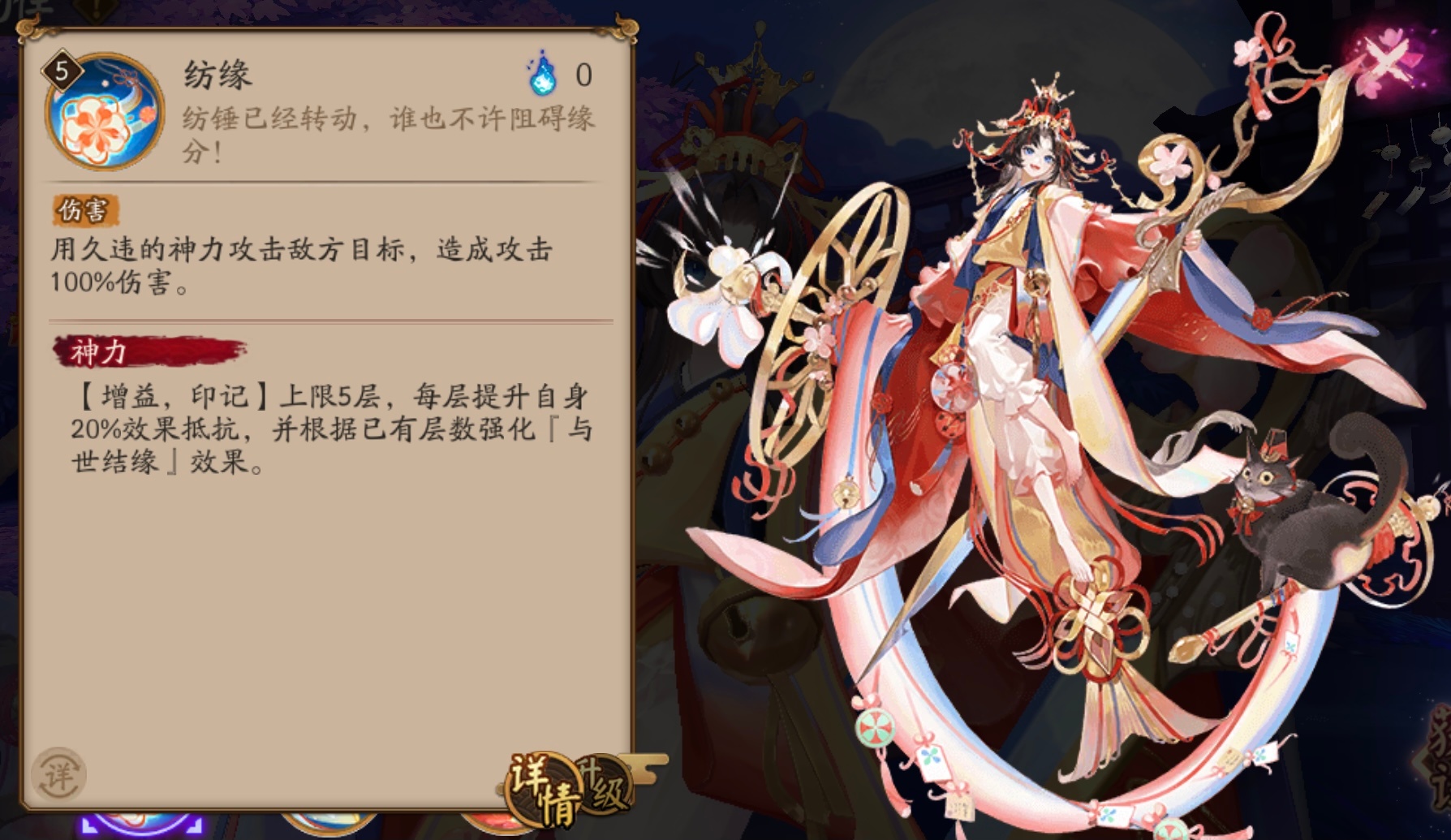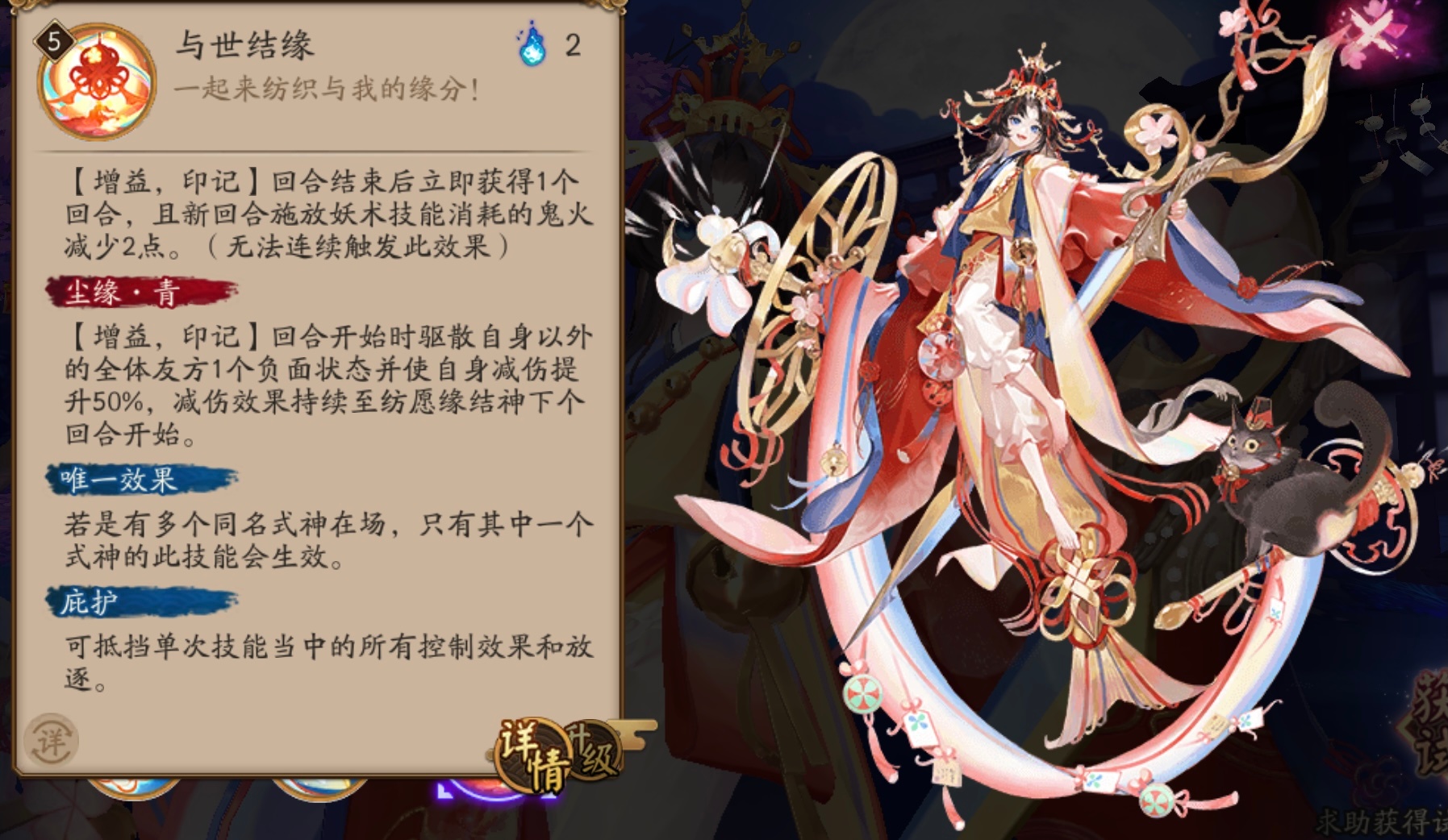 阴阳师即将在7月26日上线一个新的SP式神-纺愿缘结神,这个式神属于那种越打越强的类型,抽取之后培养起来是可以当做主力使用的。小编为大家详细讲讲她的技能是什么吧!