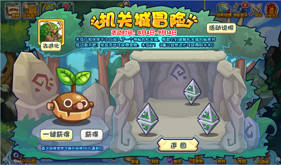 根据线索,输入对应的密码,输入正确就可以获得:木豆丁!通过自然进化为:阿木木。