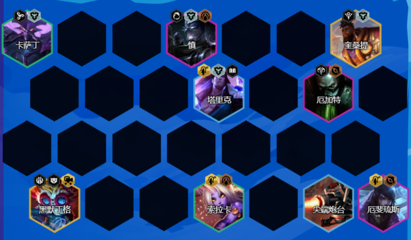 阵容组成:厄斐琉斯,慎,奎桑提,黑默丁格,厄加特,塔里克,卡萨丁,索拉卡