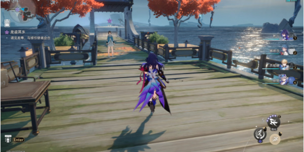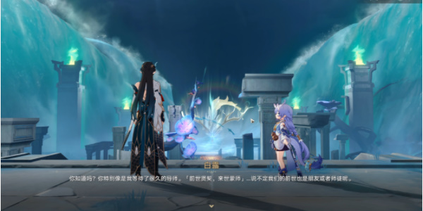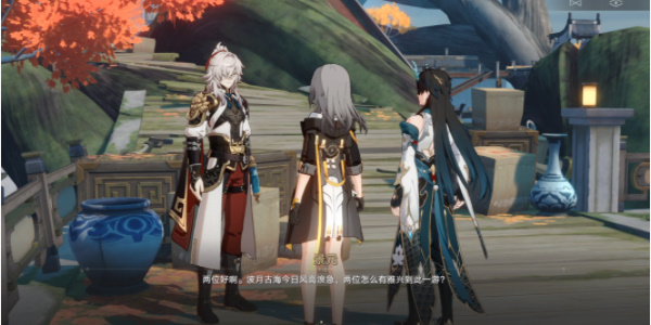 1、进入游戏到长乐天凉亭处找到丹恒,可以看到丹恒在和一个持明族女人对话,她是白露的侍女浣溪。