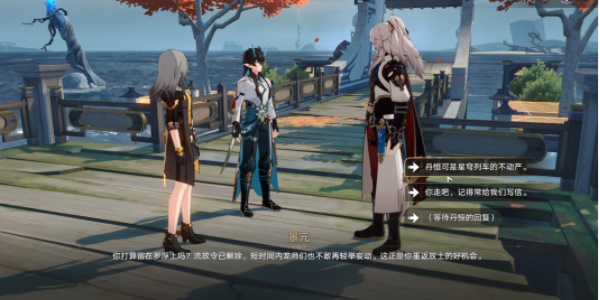 2、对话后前往星槎码头,在路上会碰到丹鼎司的持明族人,他们来威胁丹恒尽快离开仙舟。