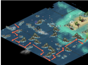 7、向东(14.9)行驶到怒涛众地界,路上有铁链和水雷拦路。碰到水雷船只需要三根木头修复。