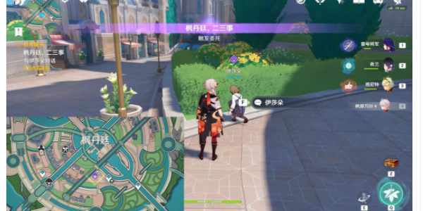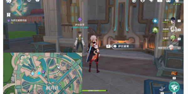 1、传送枫丹廷东南方向锚点,往地图的西北方向飞,找到草丛旁的伊沙朵与其对话。