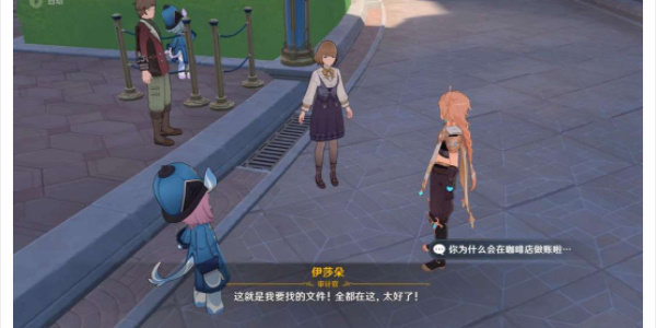 3、然后跟随缪妮,前往咖啡厅与伊沙朵对话,对话结束后任务完成。