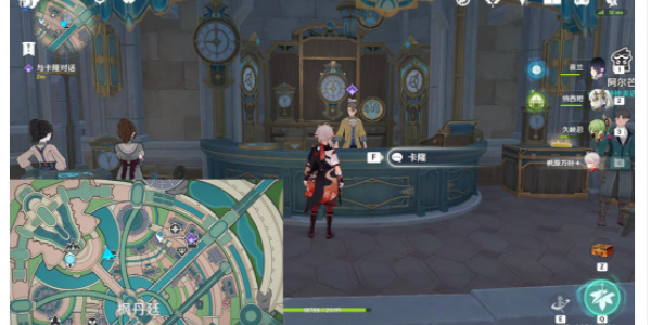 2、对话结束后,往地图的东方向走,前往底部铁匠铺,与伊丝黛莱对话;接着传送枫丹廷东北方向锚点,往地图的东方向走,前往钟表店,与卡隆对话。
