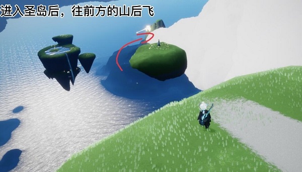 1、玩家需要前往云野圣岛的位置处,进入圣岛之后,向着前方山背后的位置飞去。