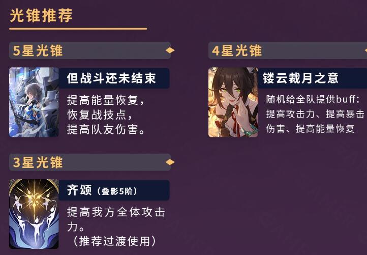 4、解析:最推荐但战斗还未结束,提高能量恢复,恢复战技点,提高队友伤害。