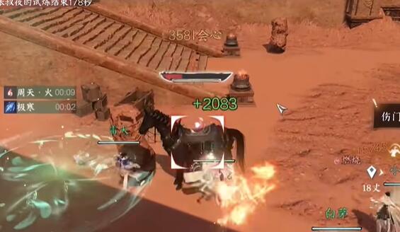 2、需要被点名的玩家站在四周的石柱后面,其他玩家远离BOSS攻击的途径,张叔夜撞到石柱上可以让其下马破防,攻击坐骑可以骑马输出张叔夜。