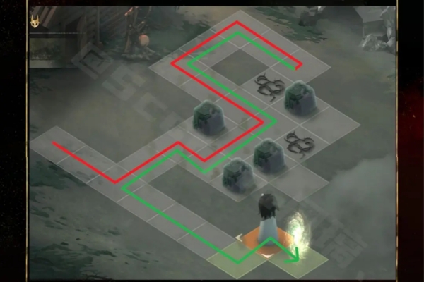 2、如果路线的颜色发生了变化,则代表角色走了回头路。