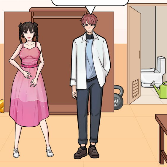 6.移动女生到厕所位置,移动女生手中的垃圾袋到花盆位置