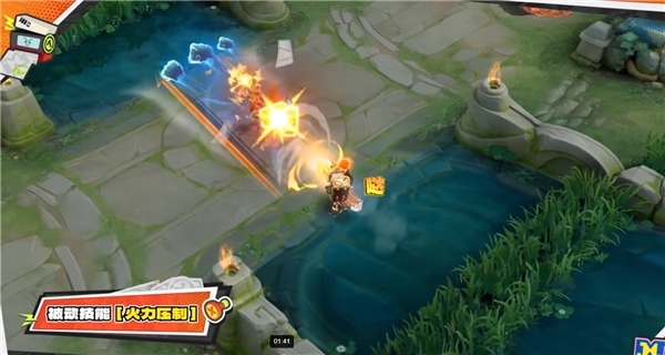 1、被动技能-火力压制:打出攻击的前端是黄色,末端呈现出蓝色。