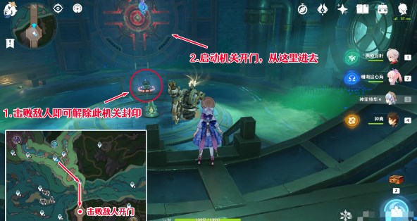 2、然后需要击败这里的发条机关以解除装置封印,之后启动装置开启大门,就可以进入;