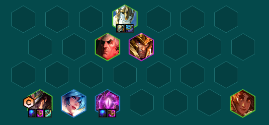 新版娑娜不再缩角,可以双C站娑娜左右,加里奥顶第一排,嘉文四世和斯维因站他后面吃双抗