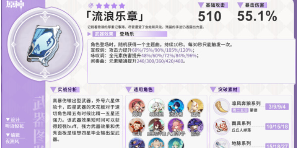 考虑融化玩法时,三种属性提升均可提高莱欧斯利造成的伤害。作为攻击模组的莱欧斯利,流浪乐章是所有4星武器里优先考虑的。