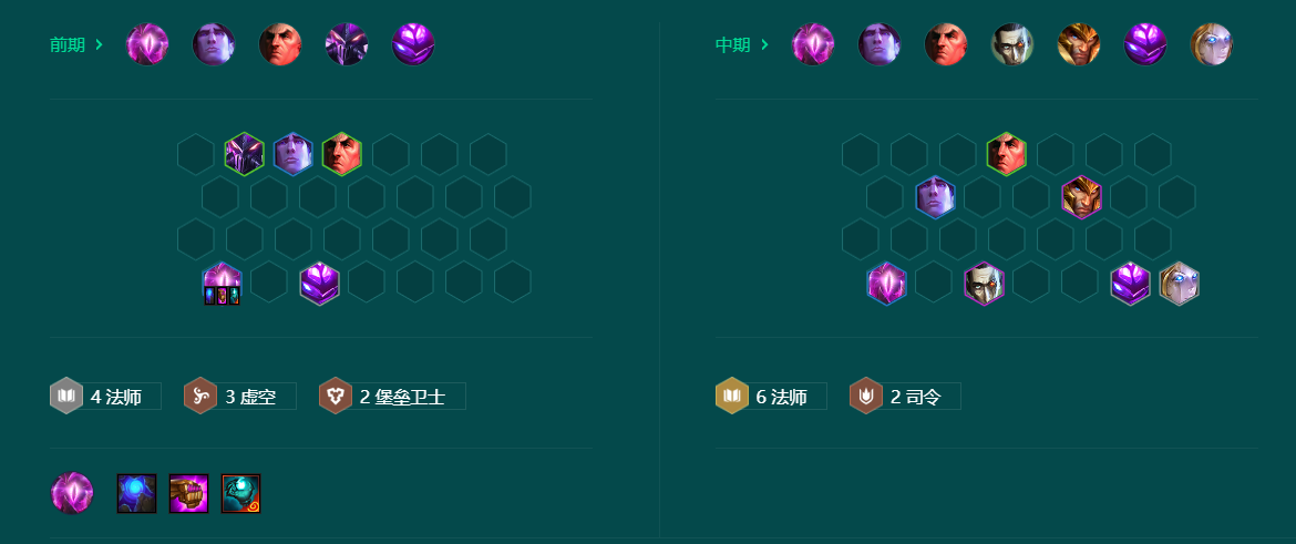 在3-2阶段升6人口,先大搜一波质量,至少搜出4法师3虚空,同时D到两星乌鸦,可以存钱准备升7人口。在7人口开出6法师2司令羁绊,没有皇子可以先用卡萨丁开3虚空2堡垒。一直在7人口搜三星乌鸦和大眼。宝石数量多可以追三星。做完大眼三件套后给希尔科做装备。