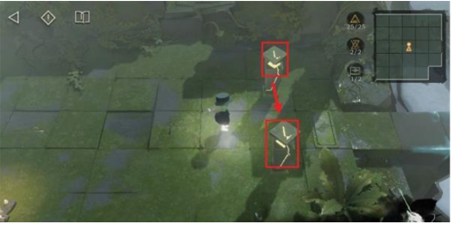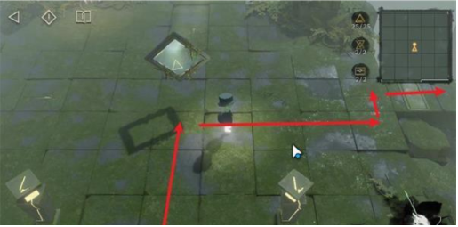 15、之后到达右上出口,按照上右下左上右上右走,之后踩图中标记的位置。