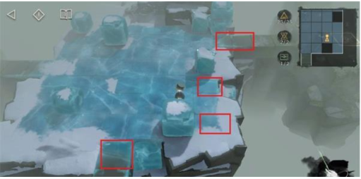 19、之后按照左上右上右下左下右顺序回到第一块冰面,再回到传送门使用遗石激活灯柱。
