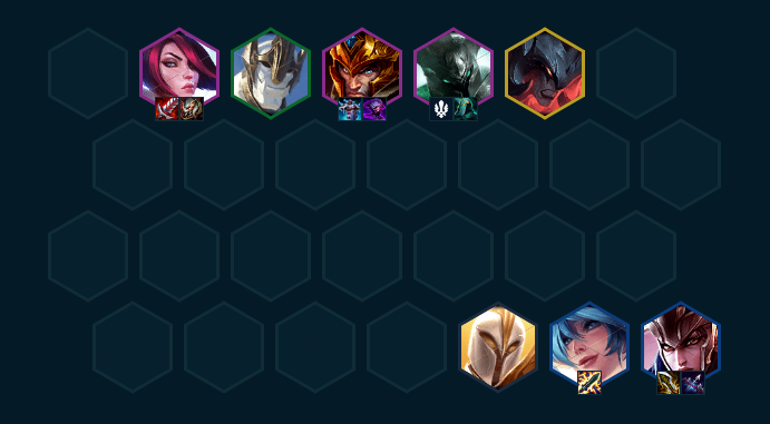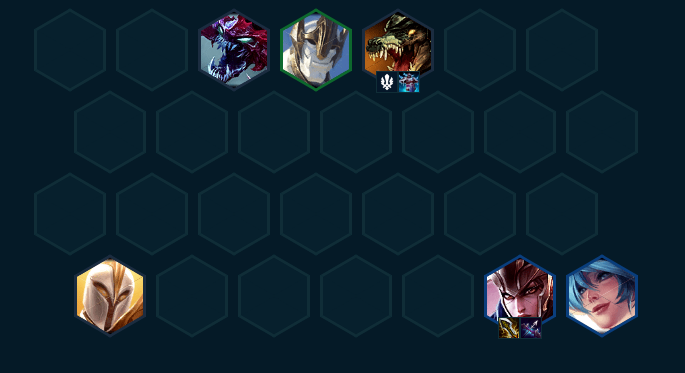 2、3-2拉6 补上挂件羁绊,可以开4裁决,也可以过度棋子先这时候可以找下奎因两星,搭配第二个选的海克斯基本可以锁血上人口了。
