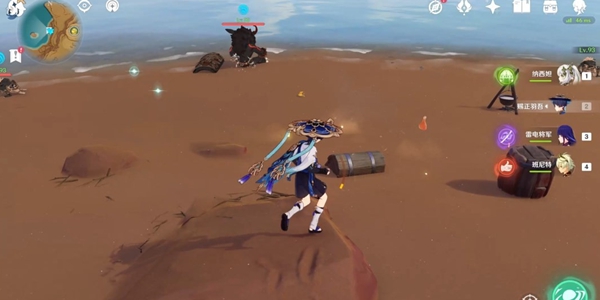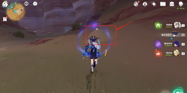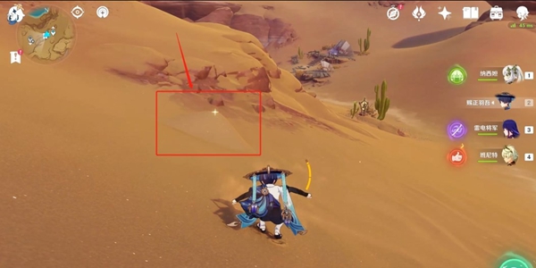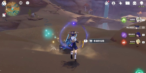 从传送锚点出发,往东南方向(地图右下方)上坡,看到沙堆后进行风属性攻击,获得普通宝箱。