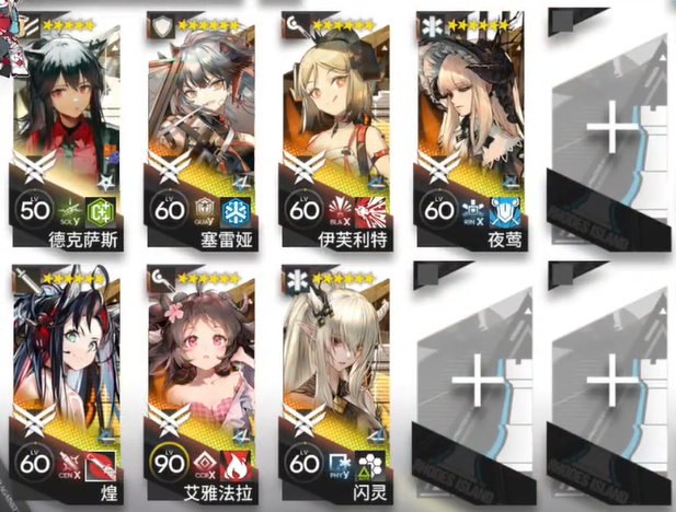 高台干员:艾雅法拉、伊芙利特、闪灵、夜莺