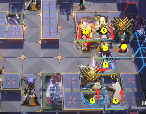 德克萨斯→煌(向左)→夜莺(向下)→ 艾雅法拉(向下)→ 伊芙利特(向上)→ 闪灵(向上)→塞雷娅