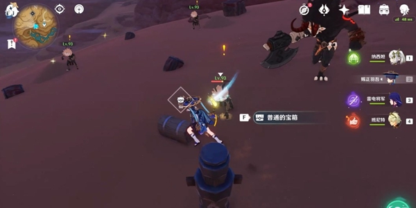 从传送锚点出发,往东南方向(地图右下方)上坡,看到沙堆后进行风属性攻击,获得普通宝箱。
