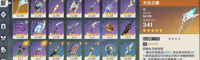 以我个人为例的话,五星角色有:可莉,迪卢克,刻晴,温蒂,七七,五星武器:四风原典*2,天空之脊,天空之刃,风鹰剑