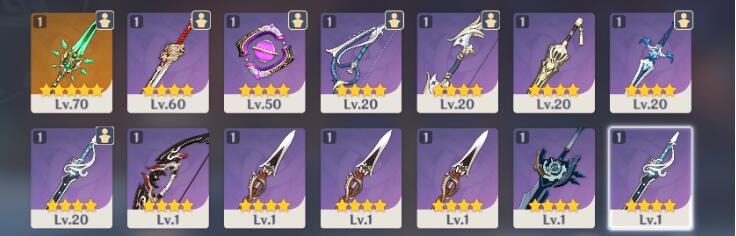 现在马上四十级了就一个刻晴,一把五星枪。其它人物全一命两命的,从来没抽过武器,到现在武器库里的武器跟群里的土豪一样多。
