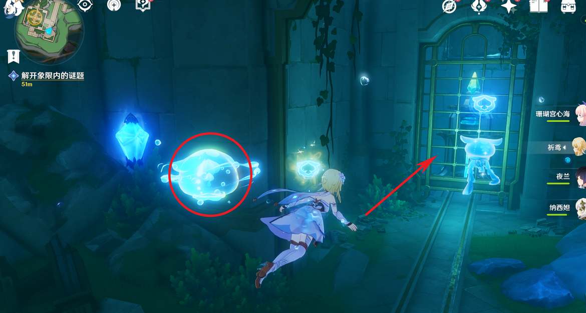6、利用水母的力量发射到晶体旁,自己到门前引爆水母即可进入房间启动装置。